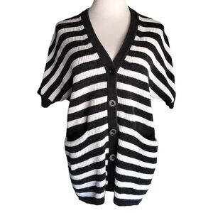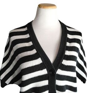 CAbi XS Black White Striped Cardigan Button Up Sweater Style #5289