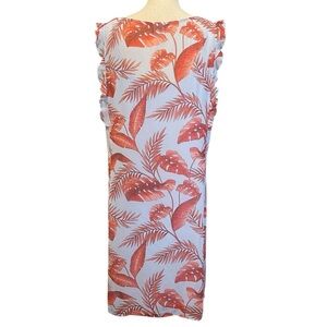 CAbi Style #5381 Isabel Blue Coral Palm Leaf Print Ruffle Sleeve Summer Dress L