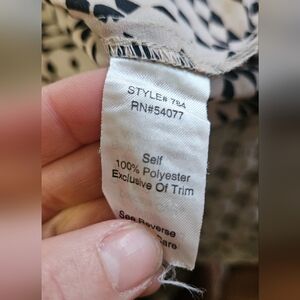 This CAbi dress combines a sophisticated notched collar with a buttoned front. perfect for both work and casual occasions. The long raglan sleeves and flowing fabric offer comfort and style, while the black and cream/light pink color palette adds a touch of elegance.
