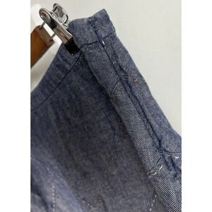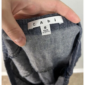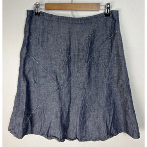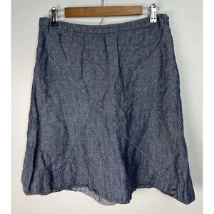 CAbi Style #930 Blue Linen Skirt Flared Topstitch Patchwork A-Line Size 8 Womens