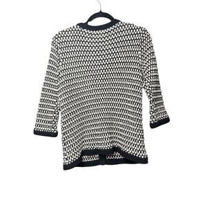 CAbi Style Coco Black/White Crochet Knit Cardigan Sweater V-Neck Women Size M