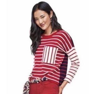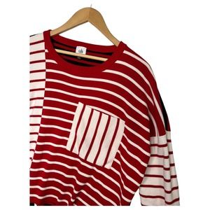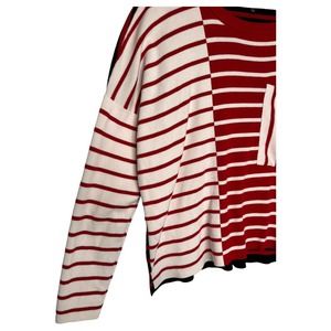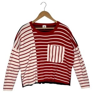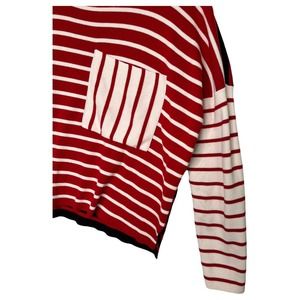 CAbi Sweater Womens M Vivien Boxy Cropped Fit Striped Pocket 5635 Black Red