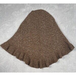 CAbi Sweater Womens One Size Brown Ruffle Hem Marled Knit Cape Cardigan Poncho