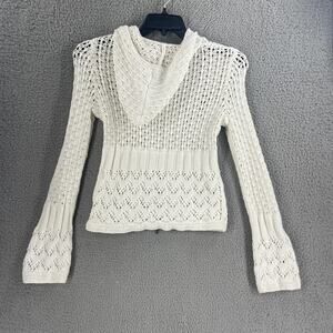 CAbi Sweater Womens Small White Hooded Zip Crochet Open Knit Cardigan Style 821