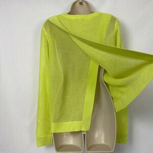 CAbi Sweater Womens Small Yellow/Green Open Knit Split Back Sheer Long Sleeve S