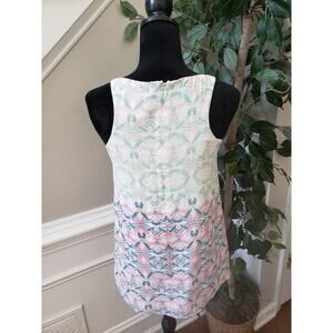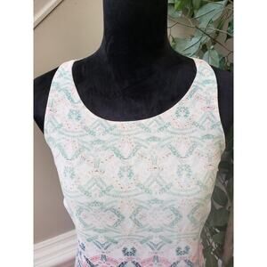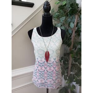 CAbi Tank Top Womens Size XS Multi Geometric Chiffon Layered Back Zip Sleeveless