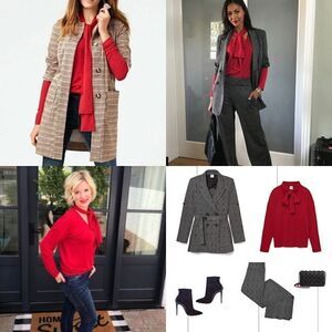 CAbi | Tess Knit Top Tie V Neck Firebrick Red Stretch Style 3804
