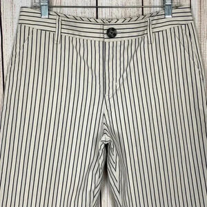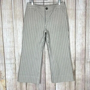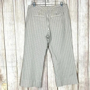 CAbi Tick Tock Striped Cropped Pant Size 10 Style # 5316 Tan Blue High Rise