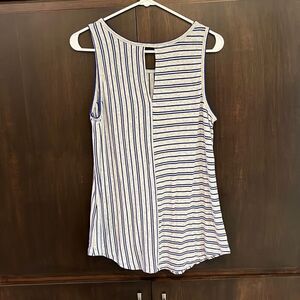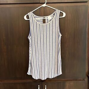 This top is made by Cabi. It’s a gray and blue sleeveless striped. Super soft, size medium and in very nice pre owned condition. Smoke and pet free home.