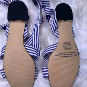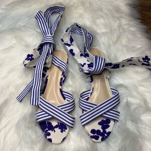 Super cute. Perfect for summer. Blue and white flat with ankle wraps. Euc with no known flaws.