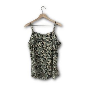 Camo / animal print cold-shoulder draped sleeve tank top form CAbi. Good used condition. Size small.