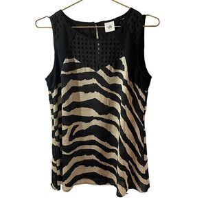 CAbi Tivoli Zebra Print Tank Top Sheer Lace Keyhole Size Small