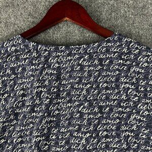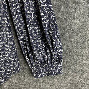 CAbi Top Womens Small Te Amo Blouse Blue Purple Print V Neck Long Flare Sleeve
