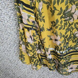 CAbi Top Womens Small Yellow Spring Scene Blouse Bel Sleeve Sheer Style 5518