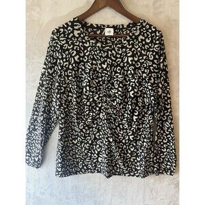CAbi Top Women's XL Mesh Black Leopard Animal Print Double Lined Blouse