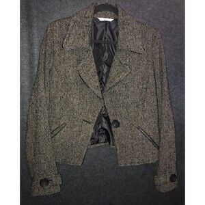 CAbi Tweed Cropped Moto Jacket Blazer Size 16 Brown Wool Blend Casual Office