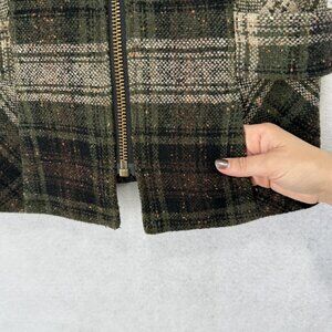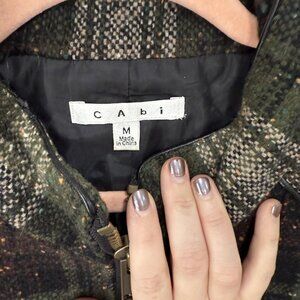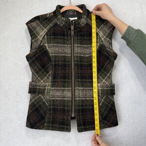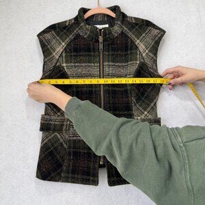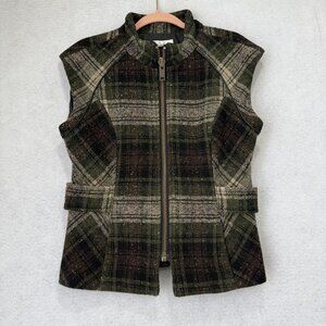 CAbi Vest Womens Medium Green Plaid Zip Front Tweed Wool Blend Lined Tailored