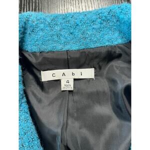 Elevate your wardrobe with this stunning CAbi jacket! This vibrant turquoise boucle jacket is crafted from a luxurious wool blend, offering both style and warmth. The unique texture of the boucle fabric adds a touch of sophistication, while the 3/4 sleeves make it perfect for transitioning between seasons.