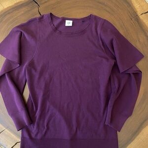 Cabi violet peek pullover sweater with open sleeves. Lightweight for spring or fall! Beautiful color. Perfect dressed up or down for a casual look. Size medium. Excellent used condition.