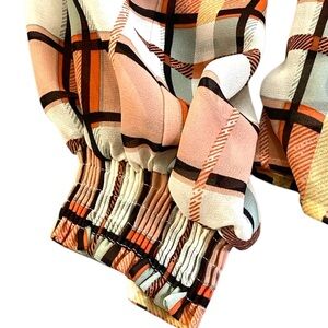 CAbi Whist Faux Wrap Blouse Windowpane Print Balloon Sleeve Medium Style 6295