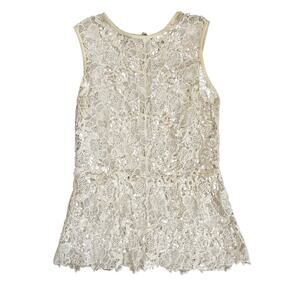 CAbi sleeveless lace top in white. Features floral crochet lace, unlined body, and an exposed back zipper. Great condition, size M.