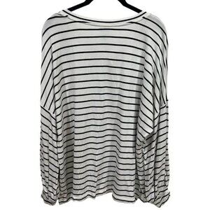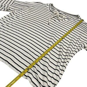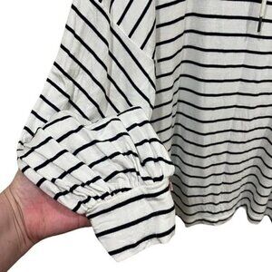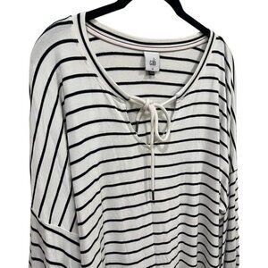 CAbi White and Black Striped Jersey Knit Long Sleeve Tiefront Size M