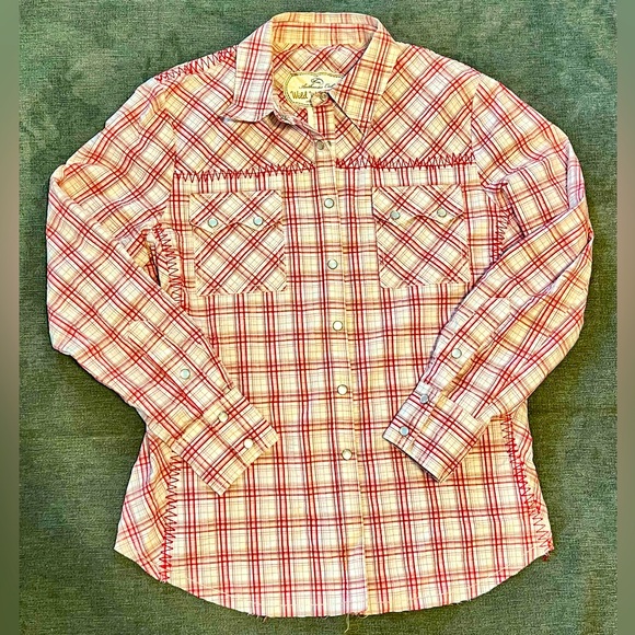Cabi Wild West Wear Pearl Snap Plaid Shirt