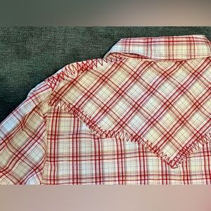 CAbi Wild West Wear Shirt Size Medium Western Pearl Snap 517 Red Plaid Cowgirl