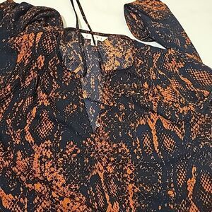 CAbi Womans Blouse Python Snake Print Top Blue Orange Long Sleeves Career xs