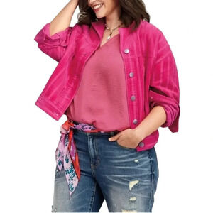 CAbi Women Size Small Pink Cheeky Topper Corduroy Bomber Jacket