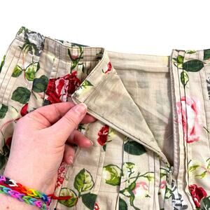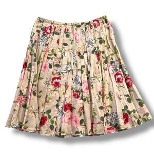 CAbi Womens A Line Midi Skirt Floral Print Pleated Cotton Tan Red Pink Size 8