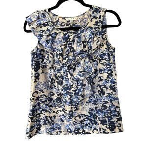 CAbi Women's Beige Splatter Print Ruffles Sleeveless 100% Silk Top Size XS