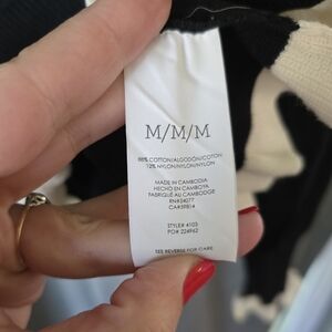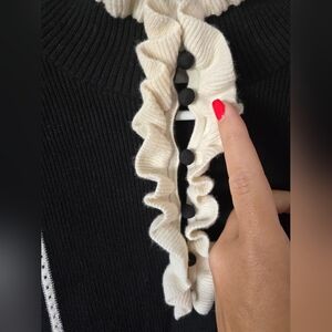 CAbi Womens Black Ribbed Ivory Ruffle Collar Adorn Sweater Knit Top Size M