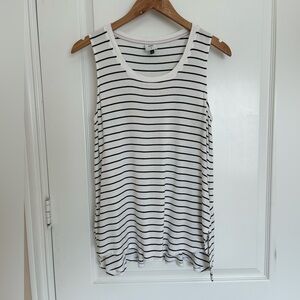 CAbi Women’s Black White Striped ATC BBQ Tank Top Small #5937
