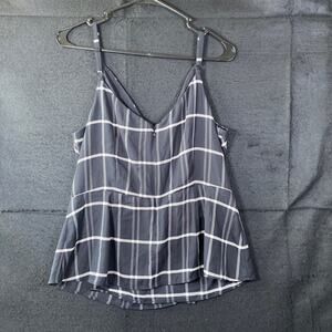 CAbi Womens Blouse Black White Striped V Neck Sleeveless Peplum 8