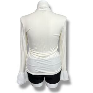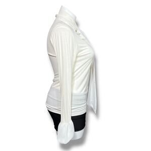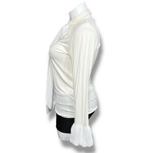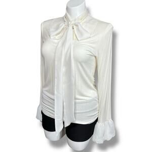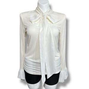 CAbi Womens Blouse Shirt Top Chiffon Tie Collar Bouffant Cuffs Cream Style 761