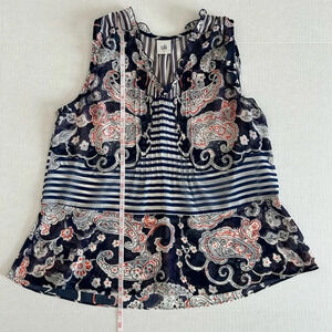 CAbi Women’s Blue Floral Paisley Peplum Sheer Blouse Small #5349
