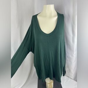 CAbi Womens Chill Long Sleeve V-Neck Knit T-shirt Top Green Size Medium