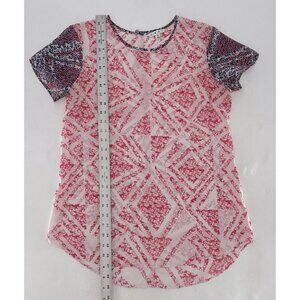 This CAbi Women's Coquette Geometric Floral Sheer Top Blouse in size Small features a Crew Neckline with a Button closure. Made from chiffon fabric with a Multicolor Floral pattern, it is ideal for various occasions such as Travel, Wedding, Party/Cocktail, Casual, Formal, Workwear, or Business. The Short Sleeve top has a Casual Sleeve type and a Regular fit, suitable for Summer, Fall, and Spring seasons. Perfect for the office or a colorful preppy career look, this blouse exudes a stylish and versatile appeal. Good used condition. Some possible slight darkening under arm areas. Hard to tell. Please see photos for a better representation. Please feel free to ask any questions.