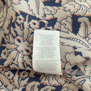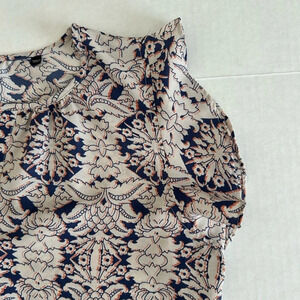 CAbi Women's Cream Blue Damask Flutter Short Sleeve Blouse Small #3074
