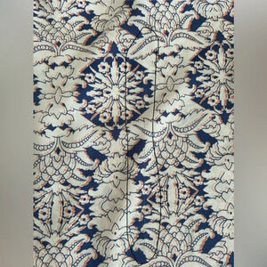 CAbi Women's Cream Blue Damask Flutter Short Sleeve Blouse Small #3074