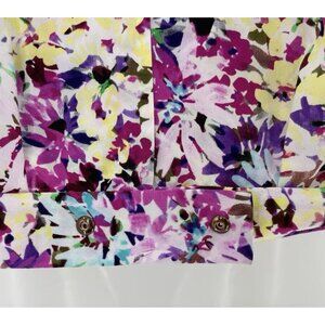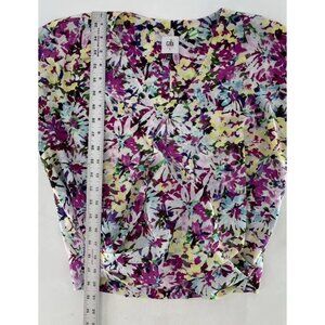 CAbi Women’s Eden Colorful Faux Wrap Floral Cap Sleeve Chiffon Blouse Sz Sm Boho