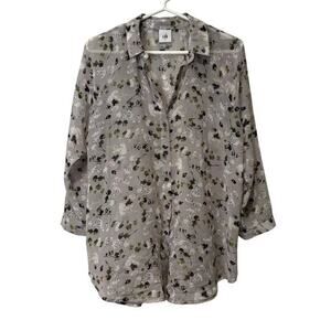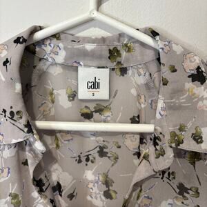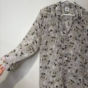 CAbi Women's Floral Sheer Blouse Gray Career Fairy Coquette Button Front S