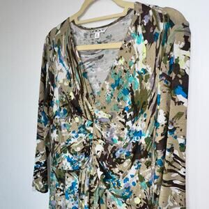 CAbi Womens Gallery Dress Size L Abstract Splatter Ruched Jersey Knit Stretch