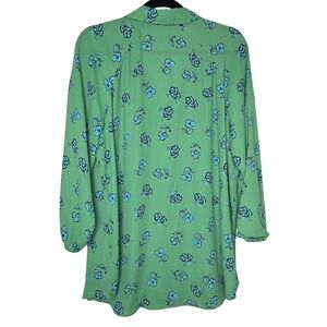CAbi Women's Go To Button Up Blouse Green/Blue/Black Floral Art Size Medium.