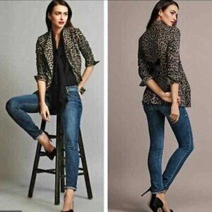 The CAbi Women's Jacket Blazer in Jungle Animal Print is a stylish and versatile piece for your wardrobe. Made from a comfortable Rayon blend fabric, this mid-length blazer features a classic one button closure and a flattering design. The grey and black animal print adds a touch of personality to your outfit, making it suitable for casual, workwear, or business occasions. With a lightweight and stretchy feel, this blazer is easy to wear and is a fashionable choice for any woman.