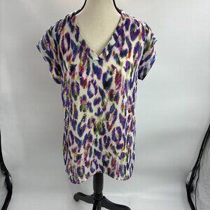 CAbi Womens M Multicolor Abstract V Neck Blouse Short Sleeve Top Casual