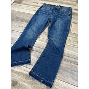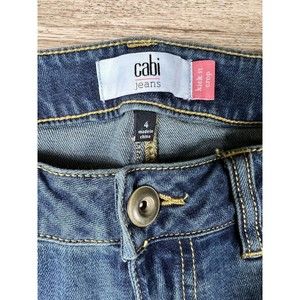 CAbi Kick it Crop midrise lightweight jeans has some stretch to them. Released raw heam detail. **Tag says size 4 but runs large. 30 waist is closer to a size 8.