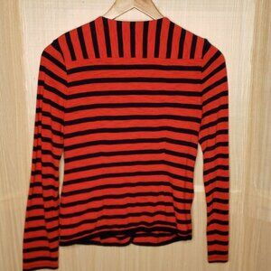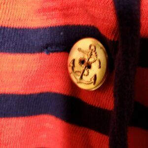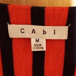 CAbi women’s red navy striped knit blazer medium. Good condition. Measurements are: 25 ½" sleeve, 23” from shoulder to hem, and 19” from armpit to armpit.