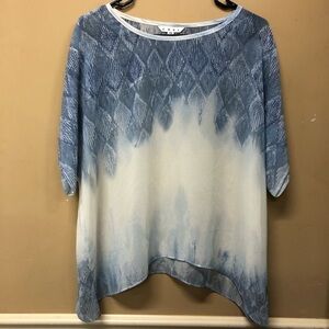 CAbi Womens Ombre Fade Out Top Sheer Blue Ivory Blouse Style 781 Size XS